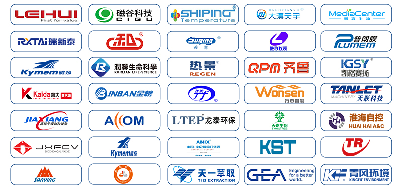 丰尚集团、山东欧迈、华恒生物、梅花生物、东富龙、青风环境、南京磁谷、山东天瑞、GEA、浙江天联、江苏艾利克、天长远安、山东欧瑞安、科滤环境、金鑫生化、华鼎机械、安拓思、浙江兴沃、江苏科海、上海豫诺、天俱时、东邦机械、康赛特、上海保兴、天一萃取、常州三高、上海数郜、苏州佳电、金太阳、润联环保、欧尚元、三樱流体、上海远安、百仑生物、汉凰科技、诺华赛、一鸣过滤、齐鲁包装、普朗膜、巨能机械等等。
