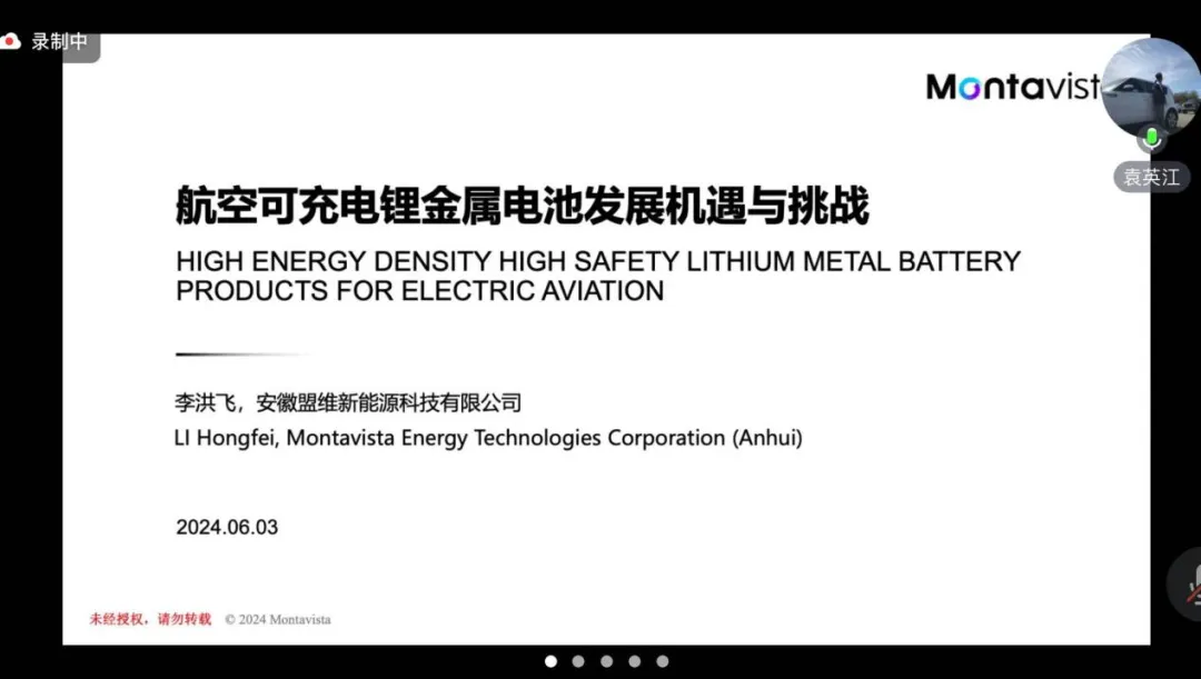 安徽盟维新能源科技有限公司的李洪飞总助分享了关于航空可充电锂金属电池发展机遇与挑战的观点。他指出,锂金属电池的能量密度在过去十几年间显著提升,从几十瓦时每公斤提高到400wh/kg,正逐步应用于低空高空乃至商业航天领域。中国政府高度重视低空经济的发展,已明确2025年攻克400wh/kg级锂电池量产、2030年达到500 wh/kg级产品小规模验证的目标,以满足电动航空器的需求。盟维科技已成功实现锂金属电池的自动化批量生产,交付的电源系统整体能量密度超过400Wh/kg,单体电芯能量密度超过500Wh/kg。