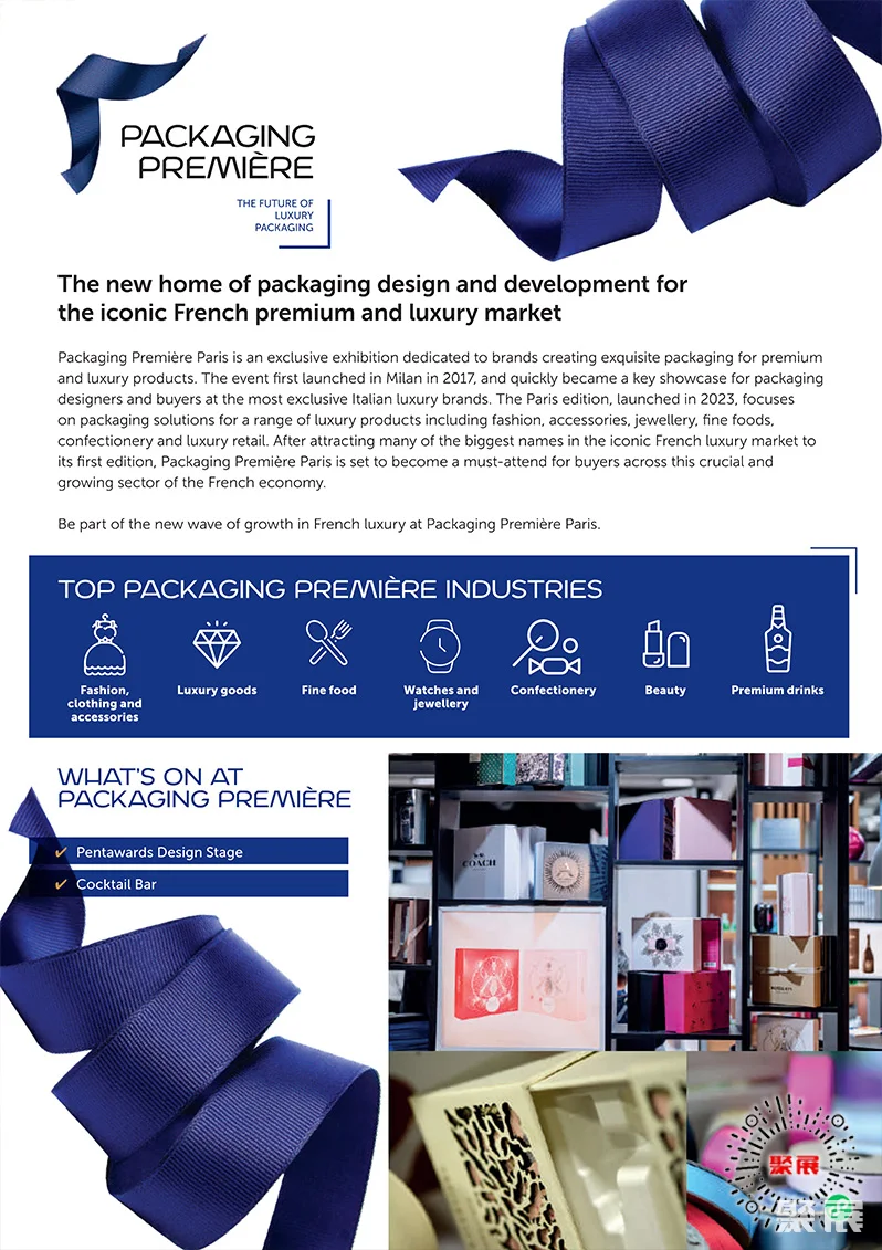 法国巴黎化妆品及香水包装、奢侈品包装展览会(Paris Packaging Week)将世界顶级美容、奢侈品和快速消费品集团与包装供应商,材料和灵感联系在一起,这将定义其品牌的未来。通过其高级别计划和社交聚会来庆祝和分享最先进的创新和设计思想,这些活动均位于全球美容和奢侈品行业的首都巴黎。