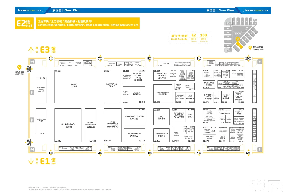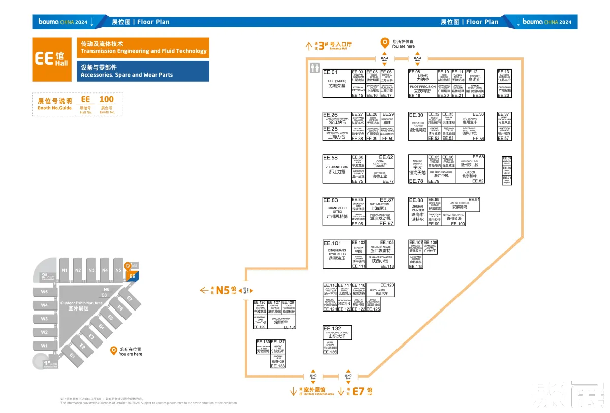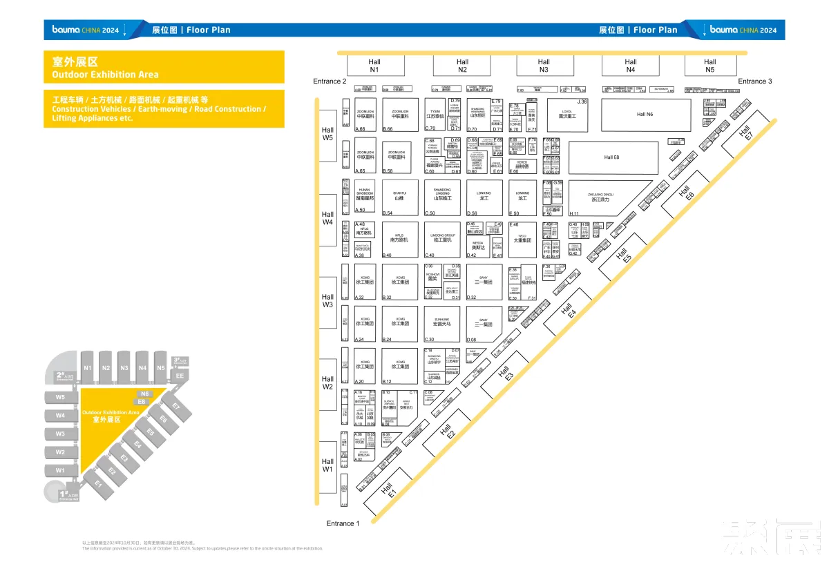 20个室内展馆、10万平米室外展区、3400+参展商,bauma CHINA 2024全馆展区分布图+各馆详细展位图现已揭晓,建议收藏,锁定你感兴趣的品牌和展区!