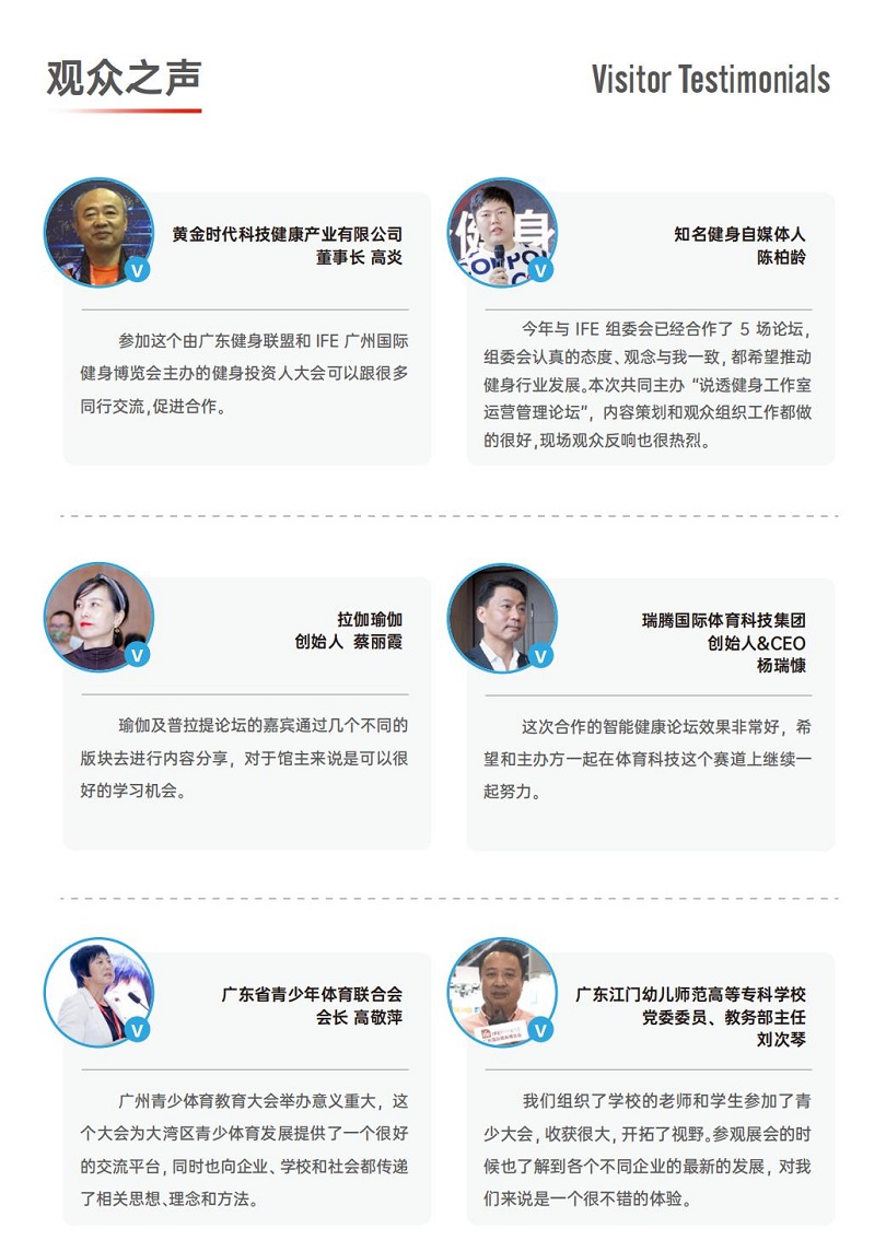 专业买家倾力来相“健” 凭借深耕华南多年的品牌力。广州国际健身展-华南私教节(IFE)吸引了大量的健身俱乐部经营者、行业投资者、连锁商、零售商等专业买家赴会参观采购。现场商机、采购需求频现。
