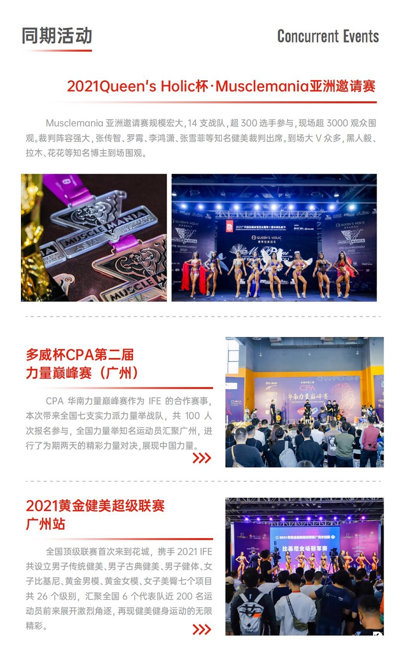 广州国际健身展-华南私教节(IFE)逾300位专业嘉宾导师到场,逾千名教练学员齐聚,共同营造业务交流氛围,促进产业融合。通过设置健身器材、营养食品、智能健身等专业展区,精选行业新品在平台首发,票选最心仪的年度新品,引领行业风向。