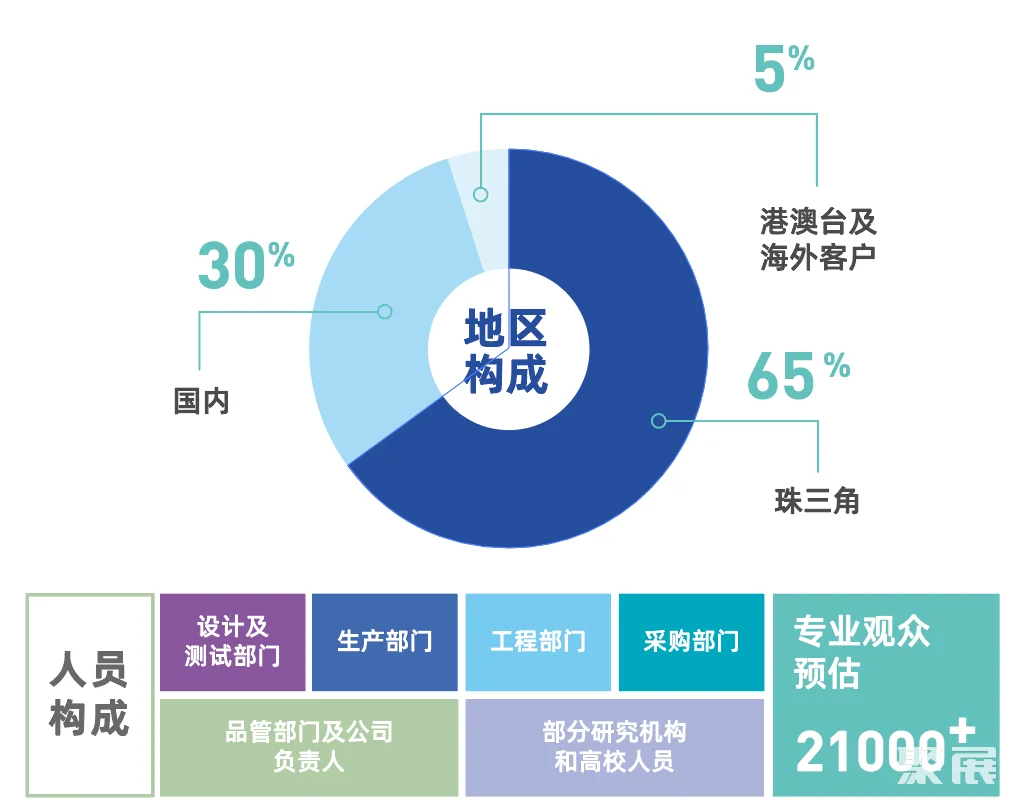 深圳大湾区机械零部件及技术展(MCTE)构成人员设计及测试部门、生产部门、工程部门、品管部门及公司负责人、部分研究机构人员和高校人员。