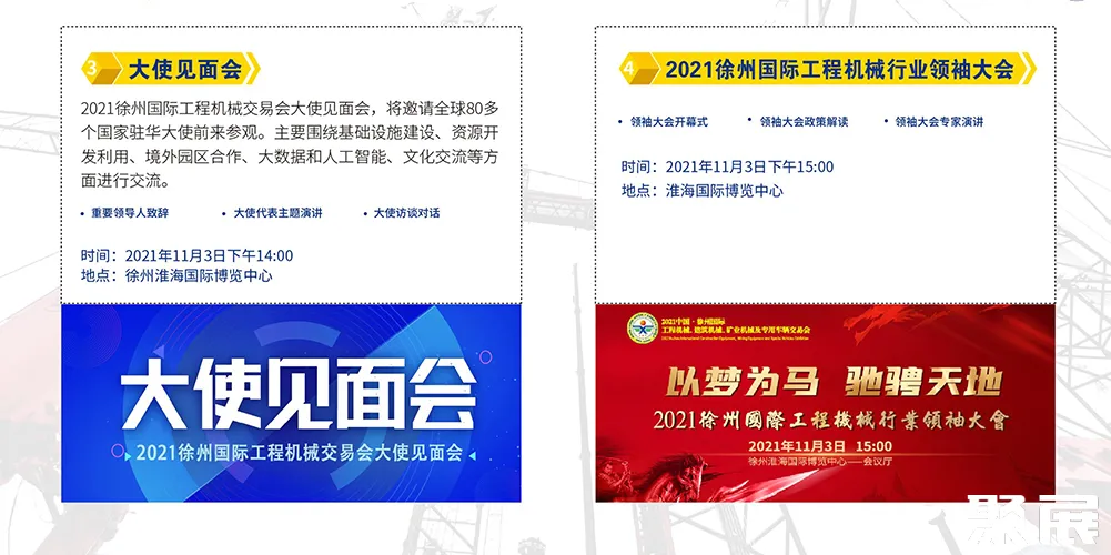 徐州国际工程机械展览会(CHINA XUZHOU)以“起步,与世界同步”为主题,实现了“从0到1”的跨越。以“专业化、市场化、品牌化”的办展方针,提升企业创新能力和国际竞争力,将徐州“工程机械产业集群”培育打造成世界先进制造业集群。(本文内容版权归属聚展所有,未经同意,禁止转发)