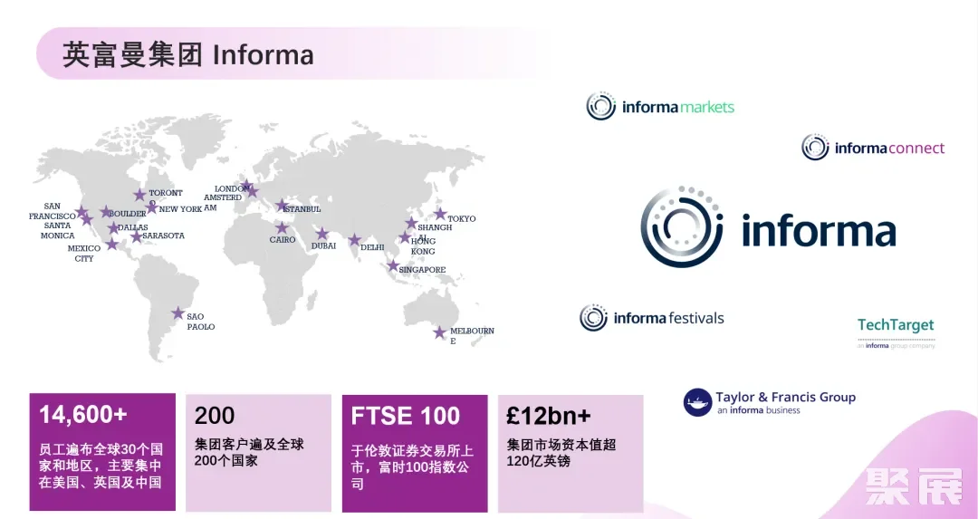 - 每年举办超550个国际B2B展会与品牌活动,连接全球15个垂直行业的买家与卖家,业务遍及40个国家及地区;