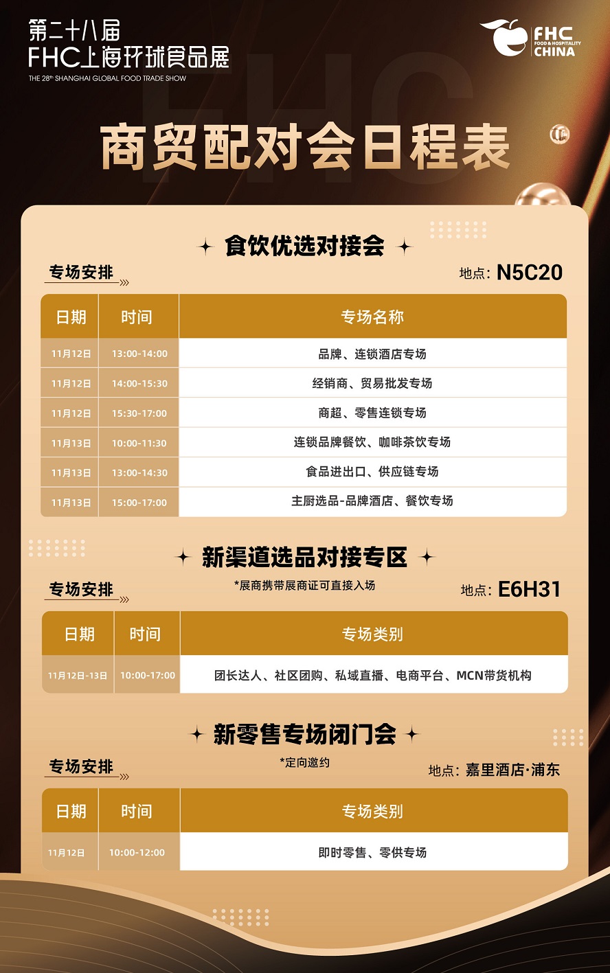 为帮助买家高效选品,FHC特别打造“食饮优选对接会”,通过智能数据库精准匹配供需,设置多个专场: