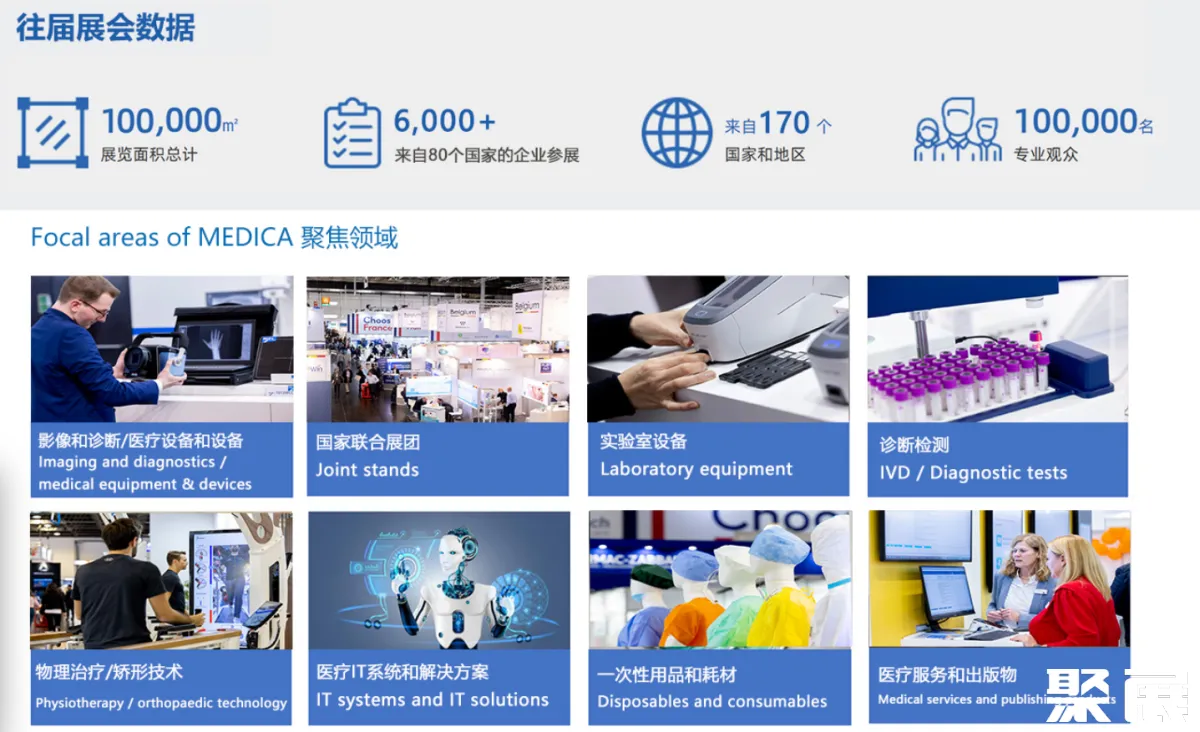 2025年11月17日至20日,MEDICA将再次在德国杜塞尔多夫聚集医疗行业的国际专家。MEDICA在杜塞尔多夫拥有来自72个国家的5000多家参展商和80000名参观者,是世界上最大的医疗B2B贸易展览会之一。