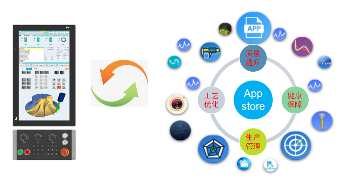 普通数控机床主要是通过加工代码、指令对刀具、工件进行控制,不具备感知、反馈和自主学习能力,数控系统缺乏对机床实际加工状态、环境变化的掌控。而随着互联网、大数据、云计算和新一代人工智能技术的不断发展,数控系统智能化需求强劲。目前,国外已经将互联网和智能化技术应用于数控系统,数控机床的加工效率和精度、机床调试速度和宜人化等大大提升。