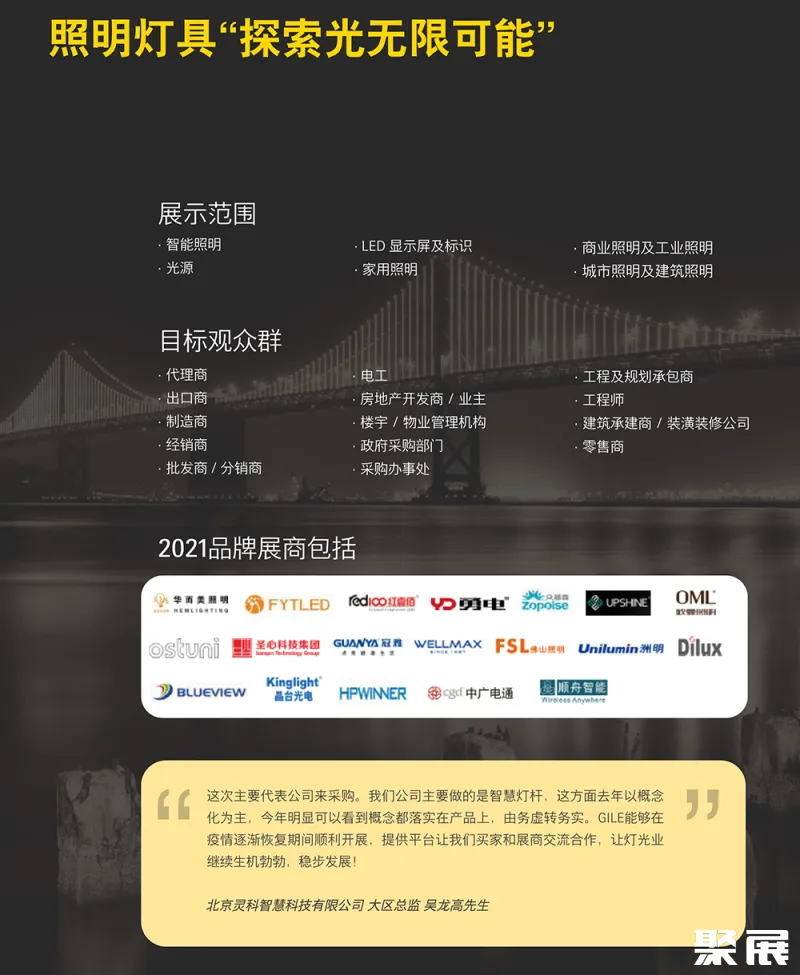 2025广州国际建筑电气技术及智能家居展览会在线预定展位 聚展为您呈现展位图、展位报价、参展商名单、会刊申请、邀请函申请、门票预定、签证服务、展位搭建等。想了解更详细资料,请联系聚展~ 本资讯由聚展网工作人员整理编辑,我们是一家汇集全球展会时间地点、门票购买、展位申请、展商名录及展会会刊的服务平台。参考资料: