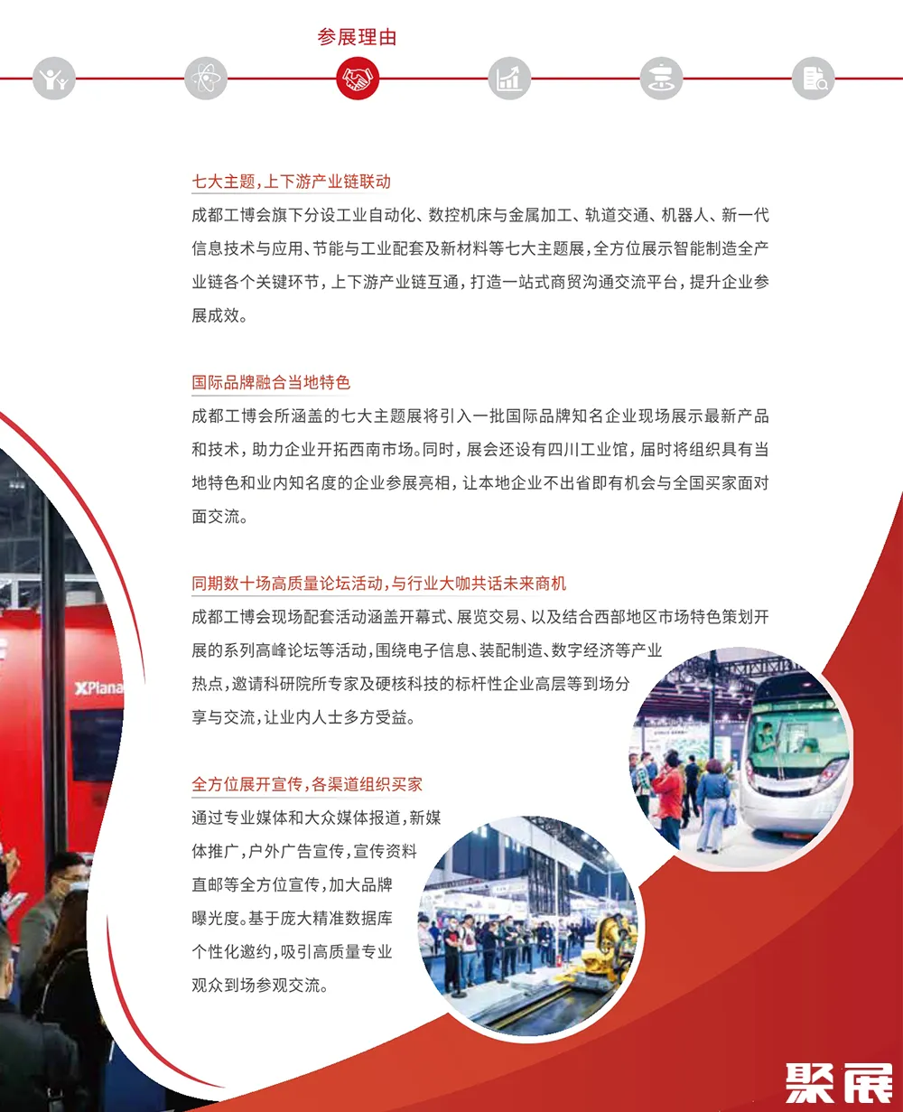 成都国际工业展览会-成都工博会CDIIF得益于人工智能、5G以及边缘计算等一系列前沿技术的现实应用,未来工业正稳步迈向大规模柔性生产、全流程透明生产、分布式生产、智能自动生产。从产品设计、制造到运输、服务,全球产业链将被重塑。得益于成都是我国重要的工业制造产业的战略核心区,成都国际工业博览会CDIIF由此孕育而生。(本文内容版权归属聚展所有,未经同意,禁止转发)