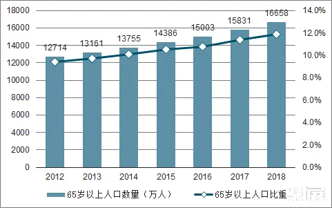 老龄人口占比不断提升。受我国长期以来“计划生育”政策的影响,我国整体保持着较低的人口出生率,老龄人口数量不断增长下,在全国人口中的占比不断提高。虽然“全面放开二胎”政策带来我国2016、2017年出生潮,但是2018年婴儿出生数量大幅下降,我国老龄化的局势越来越严峻。