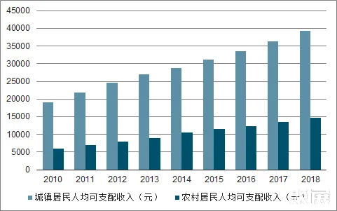 2010-2018年中国居民人均可支配收入