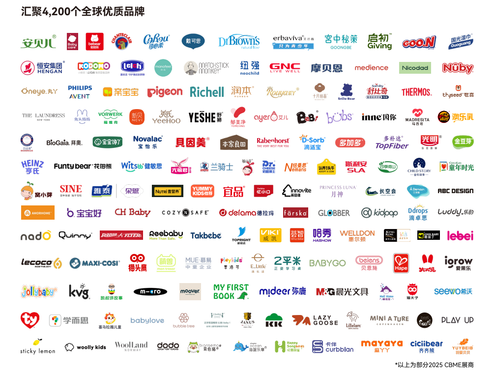 - 母婴用品与喂养护理:贝亲、世喜、Babycare、戴可思、PHILIPS AVENT、小白熊、可心柔、润本、新贝、Kidsbay、恒安集团、摩贝恩、青蛙王子、启初、家得宝、欢乐贝比、麻丫丫、晓婴坊、优生、布朗博士、美德乐、新安怡、好孩子