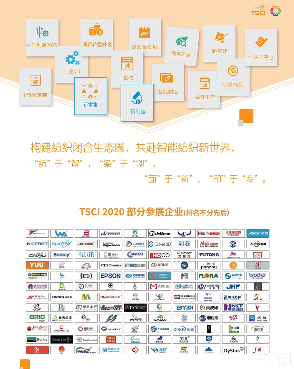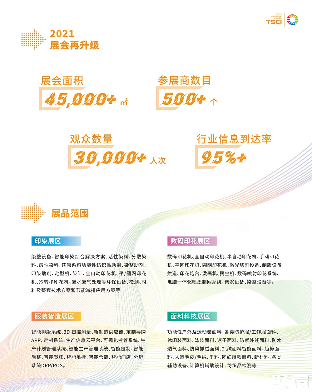 广州国际数码印花工业应用展(TSCI)展出内容涵盖印染工业、数码印花、服装数智化、辅助系统等纺织全产业链产品与服务,着重于先进“智”造技术,推广新产品、新技术、新工艺、新模式,为纺织服装企业创造交流合作和采购商机,助力行业向“新制造”转型升级!